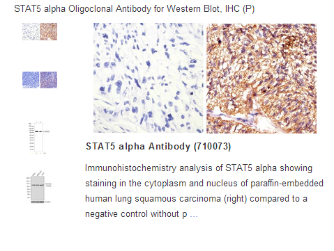 STAT5, consisting of isoform a and b, belongs to the family of STAT (signal transducers and activators of transcription) proteins which are phosphorylated by receptor associated kinases, translocate to the nucleus, and act as transcription factors in response to cytokines and growth factors. STAT5a is activated by IL2, IL3, IL7, GM-CSF, erythropoietin, thrombopoietin, and various growth hormones. In humans, the STAT5a gene is located on chromosome 17.