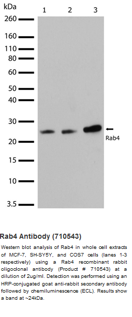 RAB4 is a GTPase belonging to the Ras superfamily which functions in both endocytotic and exocytotic pathways, and is regulated by GTPGDP exchange cycles. In organelle membranes, RAB4 molecules are highly compartmentalized and functions as a key regulator for sorting and recycling of the membrane and proteins. RAB4 is present on all endosome populations.