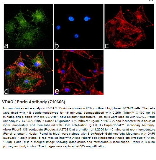 Recombinant protein corresponding to amino acids 150–250 of human Mitochondrial Porin