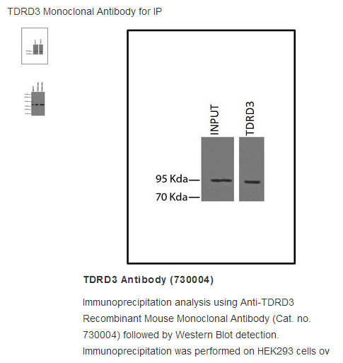 TDRD3 belongs to the tudor domain group of proteins, which are prevalent among proteins involved in RNA metabolism. TDRD3 is widely expressed and localizes predominantly in the cytoplasm. It is detected in heart, brain, placenta, lung, liver, skeletal muscle, kidney, and pancreas. Overexpression of TDRD3 in cells induces the formation of stress granules. Multiple isoforms of TDRD3 exist due to alternative splicing varients. In humans, the gene is located on chromosome 13.