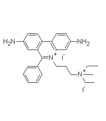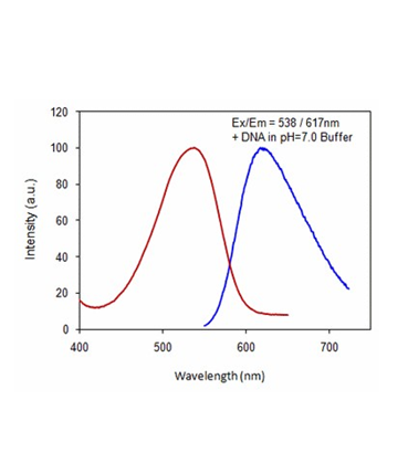 Propidium iodide (PI) belongs to the same chemical class of ethidium bromide. As in the case of ethidium bromide its fluorescence is enhanced for 20-30-fold upon binding to nucleic acids. The fluorescence excitation maximum is red-shifted for 30–40 nm and the fluorescence emission maximum blue-shifted for 15 nm or so. PI also binds to RNA as DAPI and acridine orange. PI is commonly used for identifying dead cells in a population of cells and as a counterstain in multicolor fluorescent techniques. It can also be used to differentiate necrotic, apoptotic and normal cells. It is suitable for fluorescence microscopy, flow cytometry and fluorometry.
