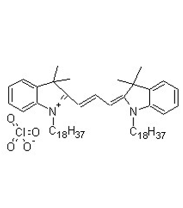 DiI, DiO, DiD and DiR dyes are a family of lipophilic fluorescent stains for labeling membranes and other hydrophobic structures. The fluorescence of these environment-sensitive dyes is greatly enhanced when incorporated into membranes or bound to lipophilic biomolecules such as proteins although they are weakly fluorescent in water. They have high extinction coefficients, polarity-dependent fluorescence and short excited-state lifetimes. Once applied to cells, these dyes diffuse laterally within the cellular plasma membranes, resulting in even staining of the entire cell at their optimal concentrations. The distinct fluorescence colors of DiI (orange fluorescence), DiO (green fluorescence), DiD (red fluorescence) and DiR (deep red fluorescent) provide a convenient tool for multicolor imaging and flow cytometric analysis of live cells. DiO and DiI can be used with standard FITC and TRITC filters respectively. Among them DiI and its analogs are most frequently used since they usually exhibit very low cell toxicity. In addition, DiI is widely used for determining lipoproteins such as LDL and HDL.