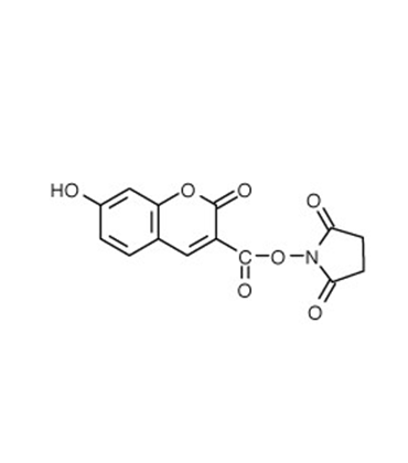 7-羟基香豆素-3-乙酸琥珀酰亚胺是7-羟基香豆素-3-乙酸与胺反应产生。它是一种用于标记蛋白质和核酸的蓝色荧光染料。这种香豆素同时也逐渐地被用作多肽,核苷酸,和碳水化合物的标记物。7-羟基香豆素-3-乙酸,琥珀酰亚胺产品的光谱学相关参数为Ex=363nm / Em=447nm;其对应分子量大小为303.23MW。