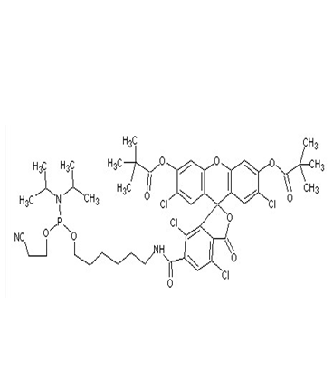 有许多方法标记寡聚核苷酸,使其带有荧光。依据其光谱需求,标记的选择多元化。5’荧光-CE-亚磷酰胺,来源于6-羧基荧光素单一异构体。5’-六氯荧光素氨基磷酸酯(HEX)和5‘-四氯荧光素氨基磷酸酯。6-TEX氨基磷酸酯[5’-四氯荧光素氨基磷酸酯]产品的光谱学相关参数为Ex=521nm / Em=541nm;其对应分子量大小为981.72MW。