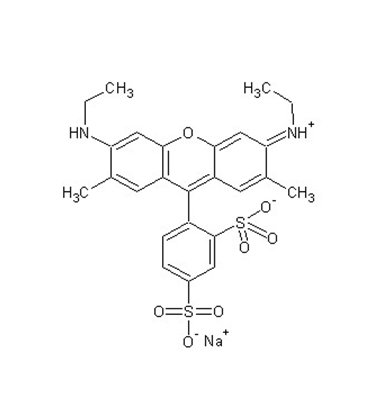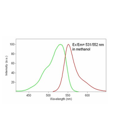 磺酰罗丹明G同磺酰罗丹明B一样,也用于极地示踪。较之于磺酰罗丹明B,其荧光更强。在pH3至10范围内,未显出pH依赖吸收或pH依赖荧光。磺酰罗丹明G *荧光参照标准*产品的光谱学相关参数为Ex=529nm / Em=548nm;其对应分子量大小为552.59MW。
