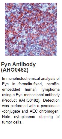 Fyn is a membrane-associated non-receptor protein tyrosine kinase that belongs to the Src-family of kinases. The unique N-terminal domain of Fyn interacts with the CD3 and Delta chains of the TcR. p59 fyn can bind other proteins (p82 and p116) through its SH2 and SH3 domains, which may act as substrates or regulators of Fyn activity. Fyn is highly expressed in brain suggesting that it may have a role in the sensory nervous network and in myelination at early stages of CNS formation.