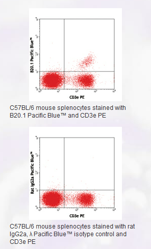 ** Pacific Blue™ is a registered trademark of Molecular Probes, Inc. Pacific Blue™ dye antibody conjugates are sold under license from Molecular Probes, Inc. for research use only, except for use in combination with microarrays and high content screening, and are covered by pending and issued patents.