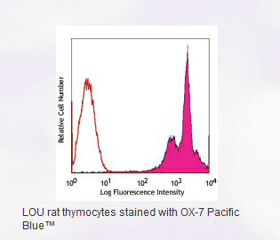 ** Pacific Blue™ is a registered trademark of Molecular Probes, Inc. Pacific Blue™ dye antibody conjugates are sold under license from Molecular Probes, Inc. for research use only, except for use in combination with microarrays and high content screening, and are covered by pending and issued patents.