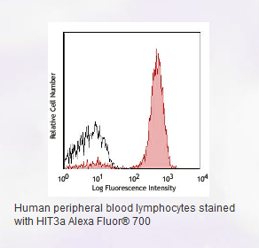 This reagent is developed for immunofluorescent staining for flow cytometric analysis; the suggested use of this reagent is ≤1.0 µg per million cells in 100 µl volume. It is highly recommended that the reagent be titrated for optimal performance for each application.