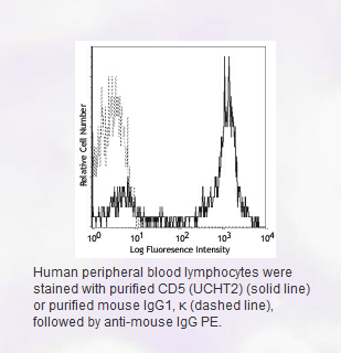 Each lot of this antibody is quality control tested by immunofluorescent staining with flow cytometric analysis. For immunofluorescent staining, it is recommended to use at ≤ 1.0 µg per 106 cells in 100 µl volume or 100 µl of whole blood. It is recommended that the reagent be titrated for optimal performance for each application.