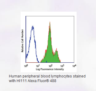 Each lot of this antibody is quality control tested by immunofluorescent staining with flow cytometric analysis. For immunofluorescent staining, the suggested use of this reagent is 5 µl per million cells or 5 µl per 100 µl of whole blood. It is recommended that the reagent be titrated for optimal performance for each application.