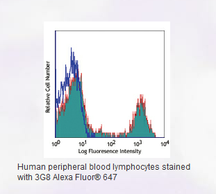 Each lot of this antibody is quality control tested by immunofluorescent staining with flow cytometric analysis. For immunofluorescent staining, the suggested use of this reagent is 5 µl per million cells or 5 µl per 100 µl of whole blood. It is recommended that the reagent be titrated for optimal performance for each application.