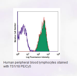 Each lot of this antibody is quality control tested by immunofluorescent staining with flow cytometric analysis. Test size products are transitioning from 20 µl to 5 µl per test. Please check your vial or your CoA to find the suggested use of this reagent per million cells in 100 µl staining volume or per 100 µl of whole blood. It is recommended that the reagent be titrated for optimal performance for each application.