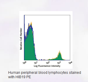 Each lot of this antibody is quality control tested by immunofluorescent staining with flow cytometric analysis. Test size products are transitioning from 20 µl to 5 µl per test. Please check your vial or your CoA to find the suggested use of this reagent per million cells in 100 µl staining volume or per 100 µl of whole blood. It is recommended that the reagent be titrated for optimal performance for each application.