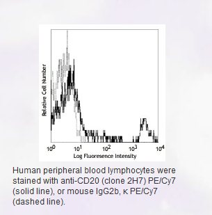 Each lot of this antibody is quality control tested by immunofluorescent staining with flow cytometric analysis. Test size products are transitioning from 20 µl to 5 µl per test. Please check your vial or your CoA to find the suggested use of this reagent per million cells in 100 µl staining volume or per 100 µl of whole blood. It is recommended that the reagent be titrated for optimal performance for each application.