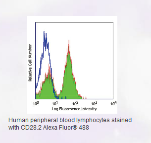 Each lot of this antibody is quality control tested by immunofluorescent staining with flow cytometric analysis. For immunofluorescent staining, the suggested use of this reagent is 5 µl per million cells or 5 µl per 100 µl of whole blood. It is recommended that the reagent be titrated for optimal performance for each application.