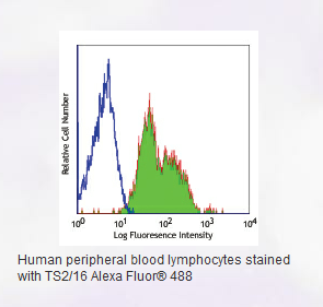 Each lot of this antibody is quality control tested by immunofluorescent staining with flow cytometric analysis. For immunofluorescent staining, the suggested use of this reagent is 5 µl per million cells or 5 µl per 100 µl of whole blood. It is recommended that the reagent be titrated for optimal performance for each application.