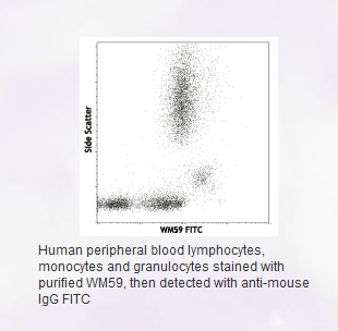 Each lot of this antibody is quality control tested by immunofluorescent staining with flow cytometric analysis. For immunofluorescent staining, the suggested use of this reagent is ≤1.0 µg per million cells in 100 µl volume. It is recommended that the reagent be titrated for optimal performance for each application.