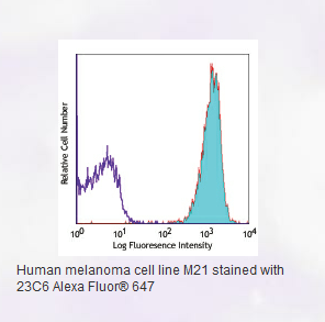 Each lot of this antibody is quality control tested by immunofluorescent staining with flow cytometric analysis. For immunofluorescent staining, the suggested use of this reagent is 5 µl per million cells or 5 µl per 100 µl of whole blood. It is recommended that the reagent be titrated for optimal performance for each application.