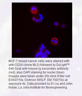Each lot of this antibody is quality control tested by immunofluorescent staining with flow cytometric analysis. For immunofluorescent staining, the suggested use of this reagent is ≤0.125 µg per million cells in 100 µl volume. It is recommended that the reagent be titrated for optimal performance for each application.