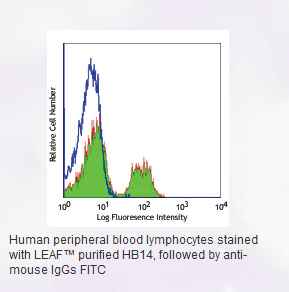 Each lot of this antibody is quality control tested by immunofluorescent staining with flow cytometric analysis. For immunofluorescent staining, the suggested use of this reagent is ≤0.5 µg per million cells in 100 µl volume. It is recommended that the reagent be titrated for optimal performance for each application.