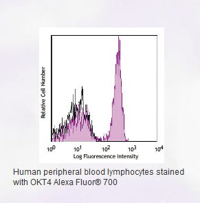 * Alexa Fluor® 700 has a maximum emission of 719 nm when it is excited at 633 nm / 635 nm. Prior to using Alexa Fluor® 700 conjugate for flow cytometric analysis, please verify your flow cytometer's capability of exciting and detecting the fluorochrome.