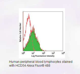 Recommended Usage: Each lot of this antibody is quality control tested by immunofluorescent staining with flow cytometric analysis. For immunofluorescent staining, the suggested use of this reagent is 5 µl per 1 million cells or 5 µl per 100 µl of whole blood. It is recommended that the reagent be titrated for optimal performance for each application.