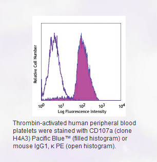 * Pacific Blue™ has a maximum emission of 455 nm when it is excited at 405 nm. Prior to using Pacific Blue™ conjugate for flow cytometric analysis, please verify your flow cytometer's capability of exciting and detecting the fluorochrome.