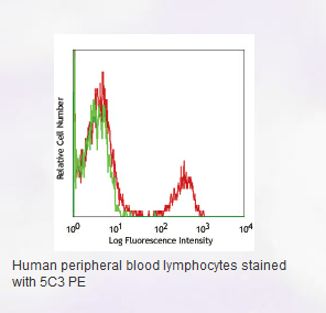 Each lot of this antibody is quality control tested by immunofluorescent staining with flow cytometric analysis. Test size products are transitioning from 20 µl to 5 µl per test. Please check your vial or your CoA to find the suggested use of this reagent per million cells in 100 µl staining volume or per 100 µl of whole blood. It is recommended that the reagent be titrated for optimal performance for each application.