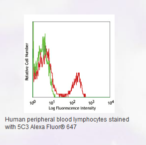 Each lot of this antibody is quality control tested by immunofluorescent staining with flow cytometric analysis. For immunofluorescent staining, the suggested use of this reagent is 5 µl per million cells or 5 µl per 100 µl of whole blood. It is recommended that the reagent be titrated for optimal performance for each application.