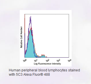 Each lot of this antibody is quality control tested by immunofluorescent staining with flow cytometric analysis. For immunofluorescent staining, the suggested use of this reagent is 5 µl per million cells or 5 µl per 100 µl of whole blood. It is recommended that the reagent be titrated for optimal performance for each application.
