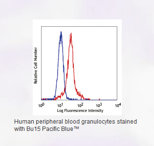 * Pacific Blue™ has a maximum emission of 455 nm when it is excited at 405 nm. Prior to using Pacific Blue™ conjugate for flow cytometric analysis, please verify your flow cytometer's capability of exciting and detecting the fluorochrome.
