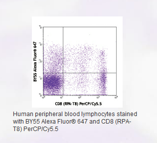 Recommended Usage:  Each lot of this antibody is quality control tested by immunofluorescent staining with flow cytometric analysis. For immunofluorescent staining, the suggested use of this reagent is 5 µl per million cells or 5 µl per 100 µl of whole blood. It is recommended that the reagent be titrated for optimal performance for each application.