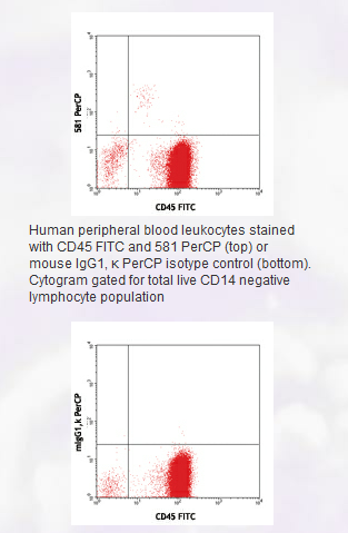 Each lot of this antibody is quality control tested by immunofluorescent staining with flow cytometric analysis. For immunofluorescent staining, the suggested use of this reagent is 5 µl per million cells or 5 µl per 100 µl of whole blood. It is recommended that the reagent be titrated for optimal performance for each application.
