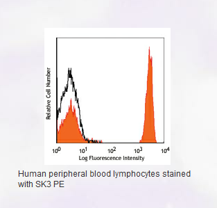 Each lot of this antibody is quality control tested by immunofluorescent staining with flow cytometric analysis. Test size products are transitioning from 20 µl to 5 µl per test. Please check your vial or your CoA to find the suggested use of this reagent per million cells in 100 µl staining volume or per 100 µl of whole blood. It is recommended that the reagent be titrated for optimal performance for each application.
