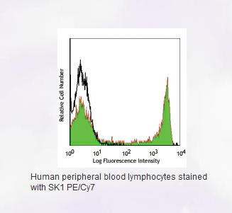 Each lot of this antibody is quality control tested by immunofluorescent staining with flow cytometric analysis. Test size products are transitioning from 20 µl to 5 µl per test. Please check your vial or your CoA to find the suggested use of this reagent per million cells in 100 µl staining volume or per 100 µl of whole blood. It is recommended that the reagent be titrated for optimal performance for each application.