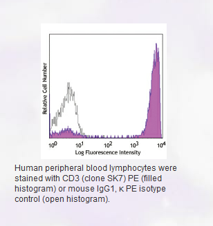 Each lot of this antibody is quality control tested by immunofluorescent staining with flow cytometric analysis. Test size products are transitioning from 20 µl to 5 µl per test. Please check your vial or your CoA to find the suggested use of this reagent per million cells in 100 µl staining volume or per 100 µl of whole blood. It is recommended that the reagent be titrated for optimal performance for each application.