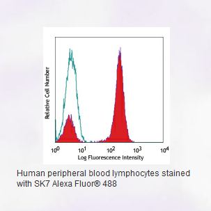 Each lot of this antibody is quality control tested by immunofluorescent staining with flow cytometric analysis. For immunofluorescent staining, the suggested use of this reagent is 5 µl per million cells or 5 µl per 100 µl of whole blood. It is recommended that the reagent be titrated for optimal performance for each application.
