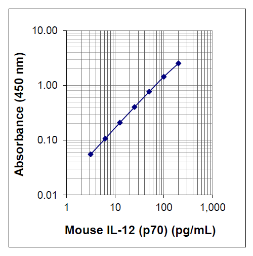 The BioLegend LEGEND MAX™ Mouse IL-12 (p70) ELISA Kit is a Sandwich Enzyme-Linked Immunosorbent Assay (ELISA) with a 96-well strip plate that is pre-coated with a capture antibody. This kit is specifically designed for the accurate quantitation of mouse IL-12 (p70) from cell culture supernatant, serum, plasma, and other biological fluids. This kit is analytically validated with ready-to-use reagents.