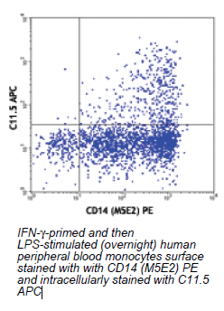 Each lot of this antibody is quality control tested by intracellular immunofluorescent staining with flow cytometric analysis. Test size products are transitioning from 20 μl to 5 μl per test. Please check your vial or your CoA to find the suggested use of this reagent per million cells in 100 μl staining volume or per 100 μl of whole blood. It is recommended that the reagent be titrated for optimal performance for each application.