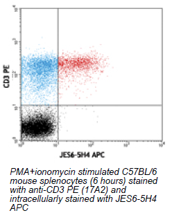 Each lot of this antibody is quality control tested by intracellular immunofluorescent staining with flow cytometric analysis. For immunofluorescent staining, the suggested use of this reagent is  0.25 μg per 106 cells in 100 μl volume. It is recommended that the reagent be titrated for optimal performance for each application.