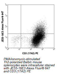 Each lot of this antibody is quality control tested by intracellular immunofluorescent staining with flow cytometric analysis. For immunofluorescent staining, the suggested use of this reagent is ≤ 0.25 μg per 106 cells in 100 μl volume. It is recommended that the reagent be titrated for optimal performance for each application.
