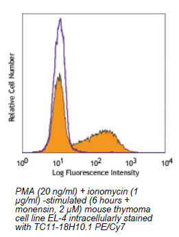 Each lot of this antibody is quality control tested by intracellular immunofluorescent staining with flow cytometric analysis. For immunofluorescent staining, the suggested use of this reagent is ≤0.25 μg per million cells in 100 μl volume. It is recommended that the reagent be titrated for optimal performance for each application.