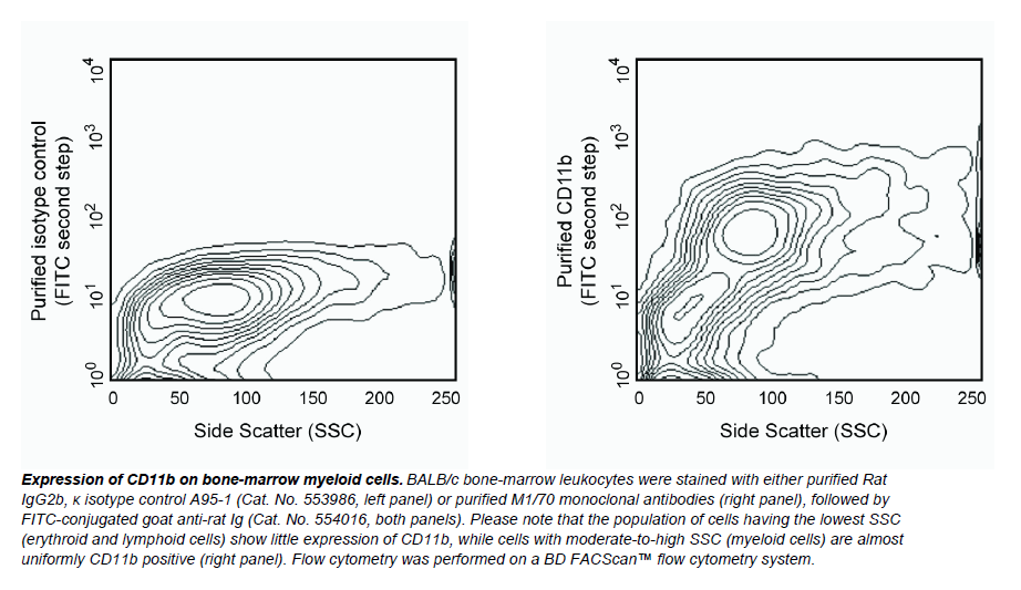 and C3bi binding, but it does not block cell-mediated lysis. Cross-reaction of mAb M1/70 with CD11b on human monocytes,