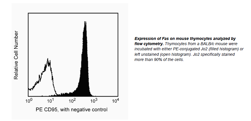 The Jo2 antibody recognizes mouse Fas. The Jo2 antibody shows cytolytic activity against cell lines expressing mouse Fas by inducing