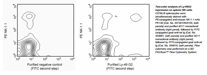 The 4D11 antibody reacts with Ly-49G2 (also known as LGL-1), an inhibitory receptor which is expressed on subsets of natural killer (NK)