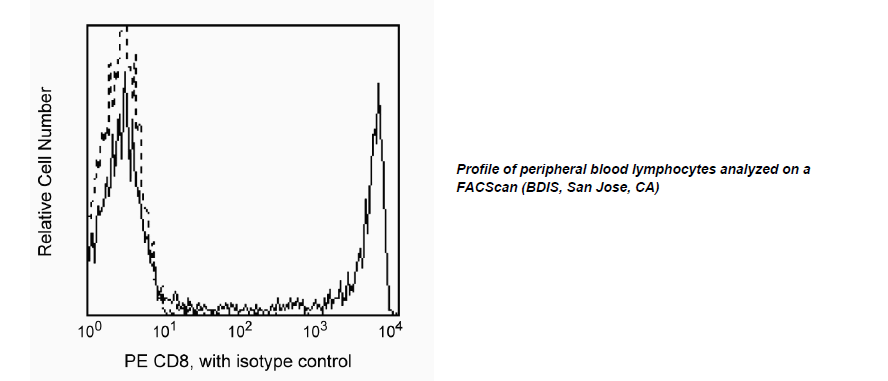 5.The antibody was conjugated with R-PE under optimum conditions, and unconjugated antibody and free PE were removed.