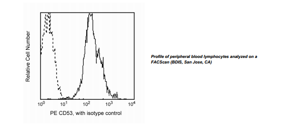 erythrocytes, and non-hematopoietic tissues. CD53 mediates signal transduction in monocytes and B cells. It has the broadest reactivity of all