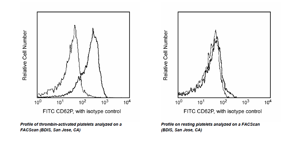 Reacts with the 140 kDa membrane glycoprotein, P-Selectin, formerly known as platelet activation-dependent granule membrane protein
