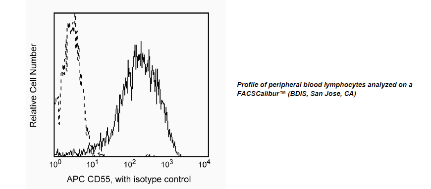 Reacts with CD55, decay-accelerating factor (DAF), a glycosylphosphatidylinositol (GPI)-anchored single chain glycoprotein of